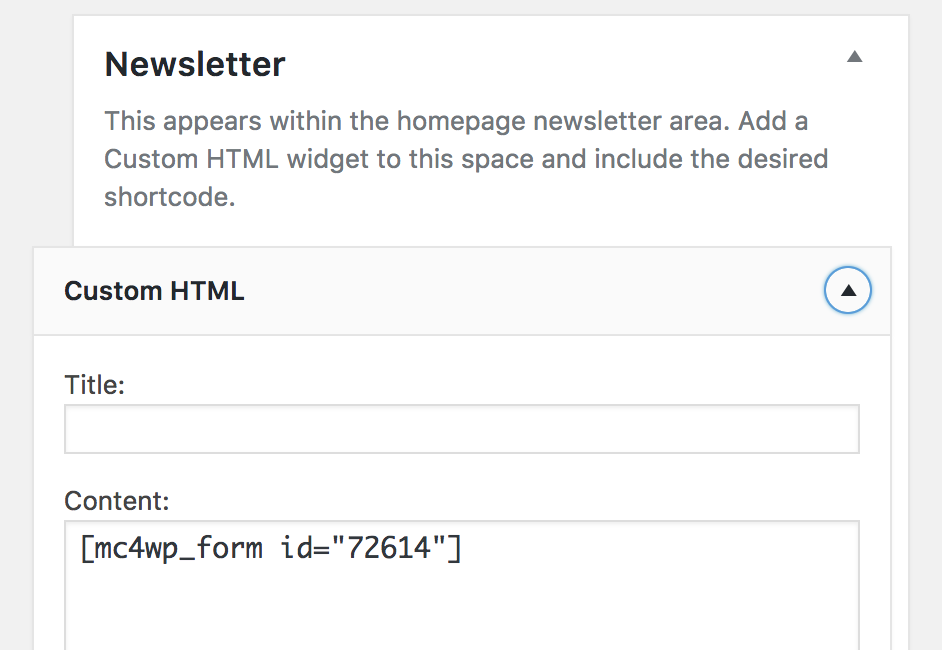 What's inside is the shortcode to our form. You'll need to follow the instructions for setting up this plugin and connecting it to your Mailchimp account. If you don't have an account, don't worry, it's free.